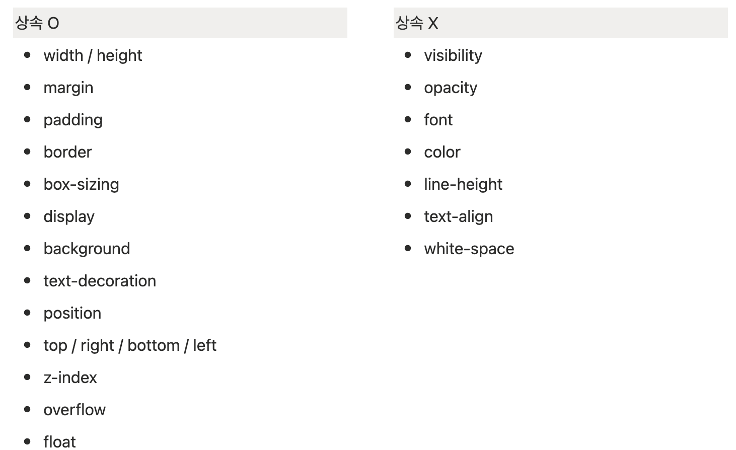 모든 스타일이 상속되는것은 아니다.