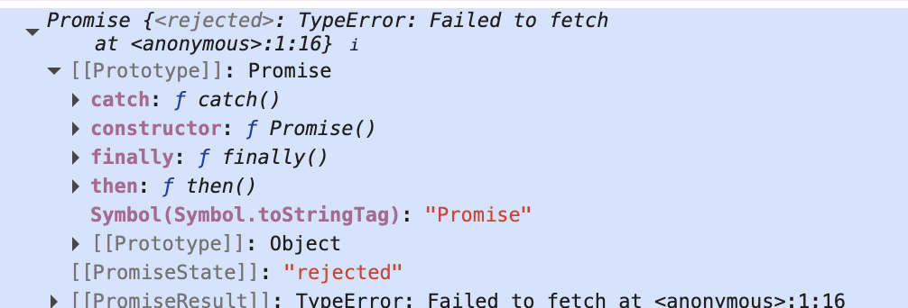Fetch 설명에서 콘솔에 Promise 객체를 살펴봤듯이 내장되어있는 메서드들이 있다.